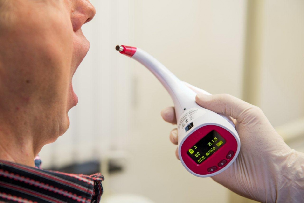Zur individuellen Bestimmung der Zahnfarbe am Patienten verwenden die Zahntechnikerinnen und Zahntechniker der Dental Labor Wießner GmbH in Eisenach unter anderem das hochpräzises digitale Farbbestimmungsgerät „Vita Easyshade Advance 4.0“, welches besonders bei schwierigen Tageslichtverhältnissen zum Einsatz kommt.